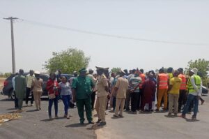 Avec les Membres du CRD, l’Administration, les Acteurs territoriaux, les Responsables de AGEROUTE ET LES TECHNICIENS DE AREZKI , le Gouverneur Oumar Mamadou Baldé a procédé le mercredi 1er juin 2022 à la visite du Parking des Gros porteurs et des travaux de la voie de Contournement.