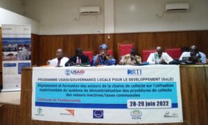 Les 28 et 29 juin 2022, Usaid Gold a organisé une Rencontre de capacitation des Acteurs de la Collecte. Parmi les Autorités présentes figurent l’Adjoint au Préfet Moussa Samb, l’Adjointe au Maire Madame Oumou Diallo, le Consultant de l’Usaid Gold Bocar Diallo, le Coordonnateur Régional de Usaid Gold Lamine Diémé et le Trésorier Payeur Régional.