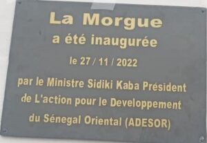 DAYBATOU est un quartier périphérique de la Commune de Tambacounda qui a besoin d’être Soutenu et accompagné. C’est la Raison pour laquelle le Ministre des Forces Armées (MFA), Me Sidiki Kaba (Président de ADESOR /Action pour le Développement du Sénégal Oriental) a procédé le dimanche 27 novembre 2022 à 12 heures à la remise officielle des clés de la nouvelle morgue de la mosquée du quartier Daybtou. La Cérémonie s’est déroulée en la présence de nombreux chefs Religieux. Les Populations sont très satisfaites du Bienfaiteur (donateur) dans la mesure où c’était le Casse-tête pour Conserver les Corps sans vie. La morgue, située dans l’enceinte de la mosquée, a été construite et équipée par Me Sidiki-Kaba. Il a aussi fait beaucoup d’actes nobles similaires.