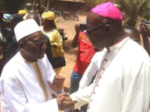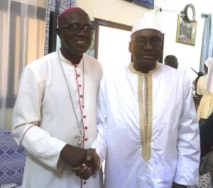 L’homme religieux,  apôtre de la paix lui a réservé un accueil chaleureux et époustouflant.  La Rencontre a été fructueuse et conviviale.  Me Sidiki Kaba a profité de l’occasion en  offrant  un billet au  Pèlerinage de Rome à Monseigneur.  Ce dernier a magnifié ce geste de haute portée et a  formulé de ferventes prières pour la paix, la cohésion sociale et la concorde nationale.    Quelques semaines bien avant,  le  généreux donateur avait offert aussi un billet pour le Pèlerinage chrétien à la Présidente des Femmes de Nazareth.