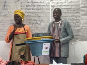 Dans le Cadre de la Semaine Mondiale de l’Entreprenariat 2023, le Bureau Régional de Enda Ecopop Tambacounda a procédé à la Remise de Kits de Performance aux jeunes entrepreneurs et aux Groupements de femmes le Vendredi 17 Novembre 2023 à son siège.  /////Enda Ecopop à travers le Projet de Renforcement de la Croissance de l’Accès des Foyers Améliorés (PROJET RFA) a lancé avec succés l’Activité de Remise des Kits de démarrage aux  jeunes Entrepreneurs du dernier kilomètre de Tambacounda (Last Mile Entrepreneur/LME). Le projet  s’étendra jusqu’en décembre 2024.  Soixante-dix  (70)  Prestataires (LME)  dont 54 handicapés ont été sélectionnés et qui sont  coachés  par le Coordonnateur Régional  de Enda Ecopop Tambacounda, Monsieur Ablaye Fame. Ces jeunes Entrepreneurs sont formés en Entreprenariat, en Développement personnel et en leadership.  L’objectif majeur du projet est d’introduire 798.405 Foyers Améliorés (FA) dans les ménages en soutenant la croissance de la vente des foyers améliorés afin d’accélérer la transformation du marché actuel et de contribuer à la réduction des émissions de gaz à effet de serre (GES) pour l’adaptation face aux changements climatiques.   De manière spécifique, Enda Ecopop vise à : 1/Renforcer le réseau de distribution des foyers améliorés par l’intermédiaire des Last Miles Entrepreneurs (distributeurs au dernier kilomètre), des groupements de femmes (GPF et GIE) pour soutenir la vente des foyers améliorés et équilibrer le niveau de distribution entre les zones rurales, semi-urbaines et urbaines dans les régions d’intervention ; 2/Vulgariser les foyers améliorés à travers des activités de sensibilisation (démonstrations culinaires, animations-vente, caravanes, émissions radio, etc.) et de communication de masse pour un changement de comportements via la presse locale (les radios communautaires et privées) ; 3/Assurer la mise en place d’un dispositif fonctionnel et efficace de suivi, vérification et validation des données.  /////Enda ECOPOP a (1)Fourni aux LME un kit de démarrage composé de Bâche, de parasol, de trousse et de 10 foyers améliorés ; (2)Motivé d’avantage les LME pour chaque trente (30) Foyers Améliorés vendus dans le mois, le LME bénéficiera de supports de promotions, de communication ; (3)Formé et accompagné (évaluation, formation, coaching) les LME dans la vente des FA ; (4)Mis  à disposition de matériel de marketing, d’outils de gestion et de suivi des ventes ; (5)Facilité la mise en relation entre LME et Producteurs de la région ; (6)Fourni aux LME performants (ayant commercialisé 205 FA en une durée de 6mois) des bonus basés sur les performances (bonus de 10 FA, frais de communication) ; (7)Appuyé les LME par l’organisation des animations-promotionnelles et caravanes de sensibilisation afin de booster leur vente.