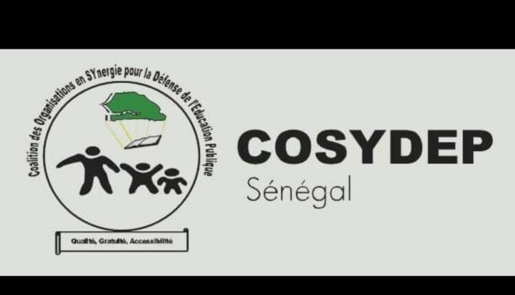 3/Noter la faible proportion de jeunes dans le fichier électoral (800 000 soit 13% alors que les moins de 35 ans constituent 75% de la population). Si le processus électoral a été par moment angoissant, son issue recrée l’espoir chez les populations, en particulier les jeunes. //Le Sénégal a ainsi servi une leçon au monde entier sur la vitalité de sa démocratie et la grandeur de son peuple. La COSYDEP félicite les organes de gestion des élections, reconnait la qualité des offres des différents candidats en matière d’éducation et leur manifeste sa sympathie pour tous les efforts consentis. Elle souhaite un prompt rétablissement au Candidat Mahammed Boun Abdallah DIONNE dont l’état de santé a nécessité son évacuation à l’étranger à la veille du scrutin.