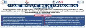 L’Inspection Médicale des Ecoles(IME) a tenu un atelier de sensibilisation des prestataires de santé des districts du projet, des autres acteurs intervenant sur la SRAJ et du personnel médical de l'IME sur l’utilisation des réseaux sociaux dans leurs stratégies de communication et de sensibilisation dans les espaces ados-jeunes.