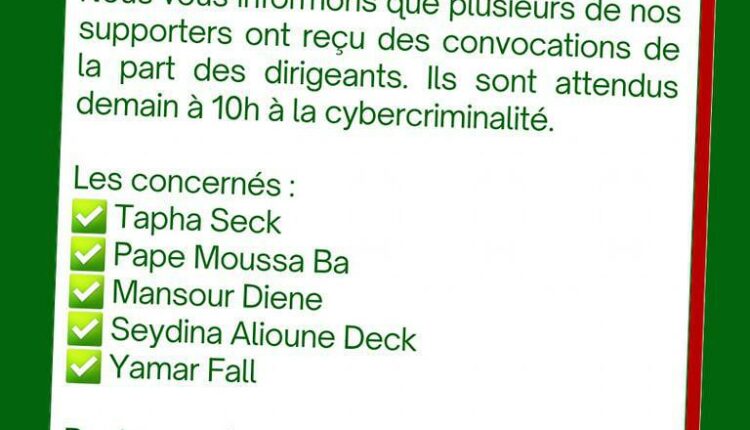 L’AS Pikine traverse une période de turbulences. Après le point de presse du Comité des Supporters sur la situation du club, plusieurs d’entre eux ont été convoqués ce jeudi à la Cybercriminalité, à la suite d’une plainte déposée par la direction du club.